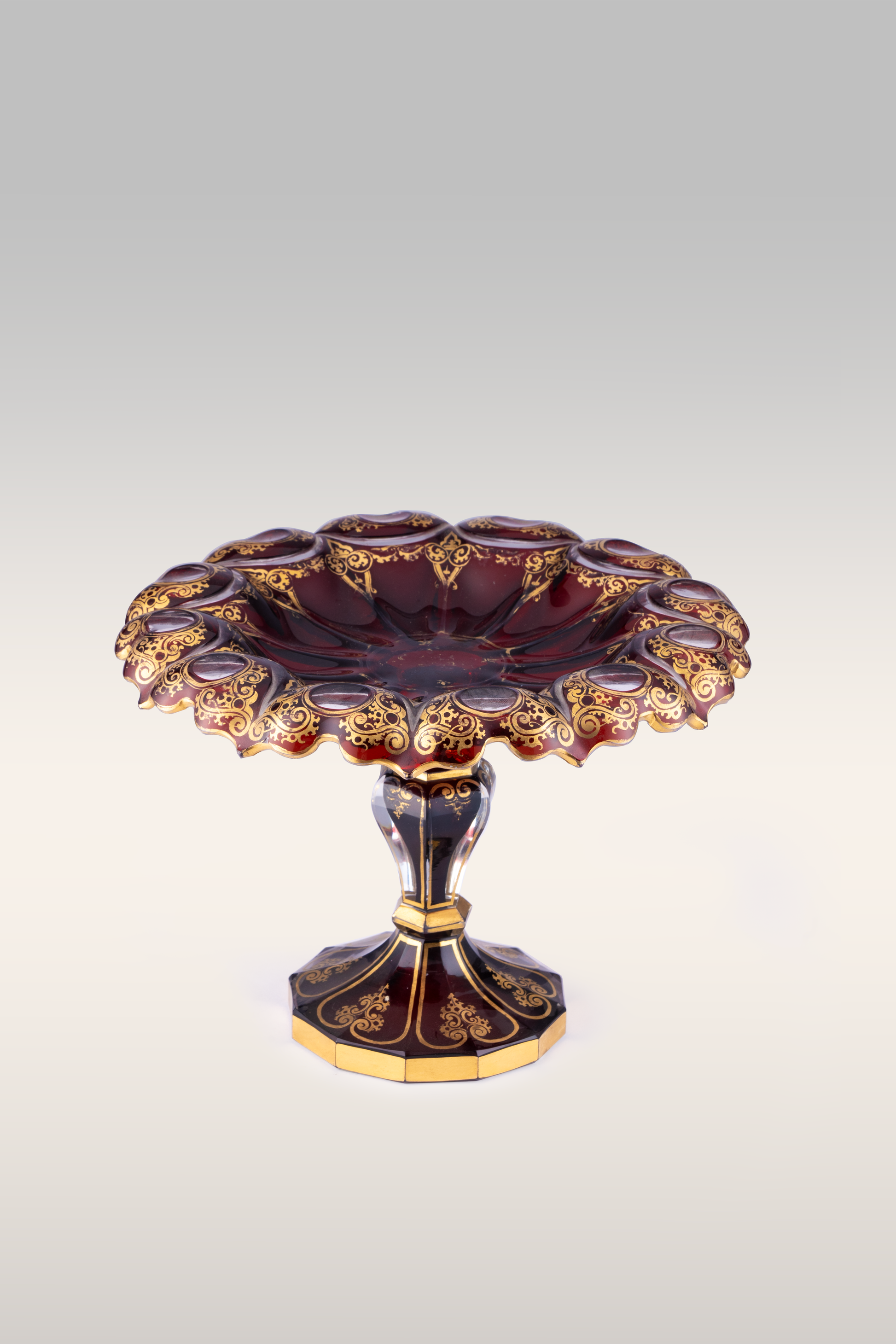 A Bohemian Ruby Red & Gold Pedestal Tazza