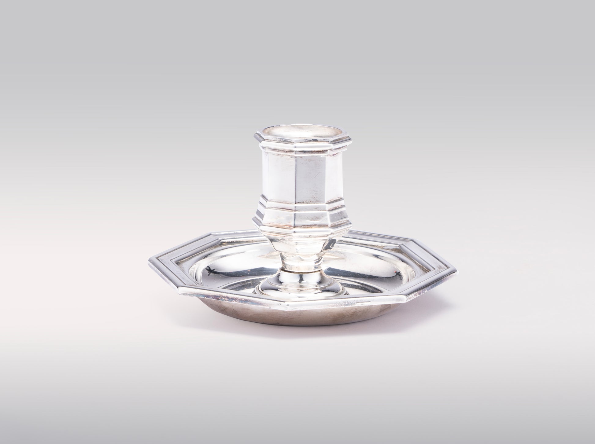 Christofle's designs have spanned various stylistic periods, from Neoclassical and Romanticism in their early years to Art Nouveau and Art Deco, and contemporary styles. This relatively simple octagonal taperstick likely reflects a more classical or restrained aesthetic popular in the earlier to mid-19th century or a later return to such forms.