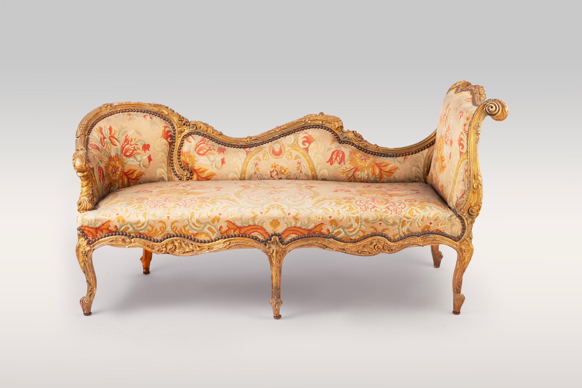 A Giltwood Rococo Style Chaise Lounge / Daybed