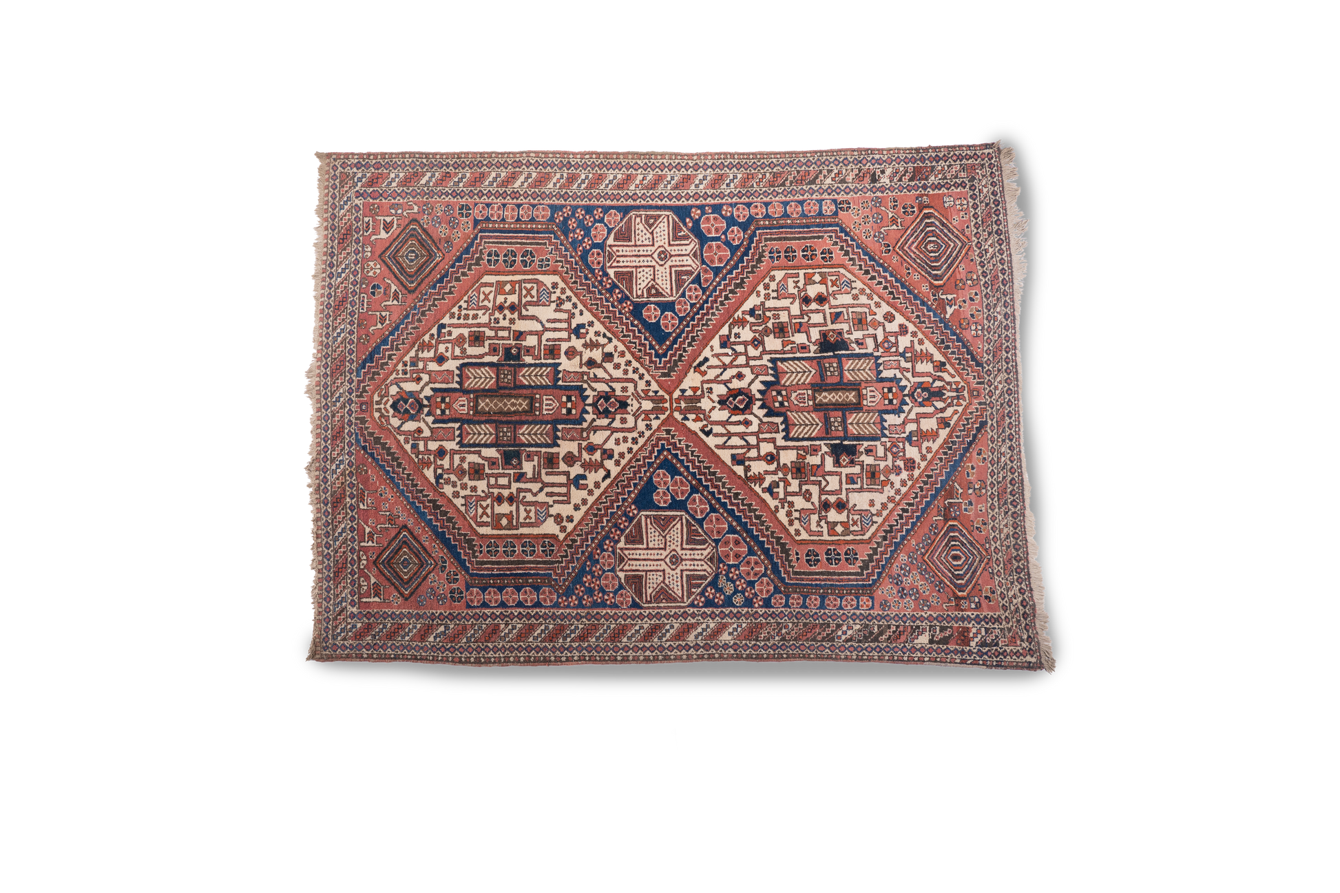 The carpet is associated with the Khamseh Confederacy was a tribal alliance in the Fars province of southwestern Persia (now Iran), formed in the 19th century. Their weavings are known for their distinctive designs, often featuring the characteristic large medallions.